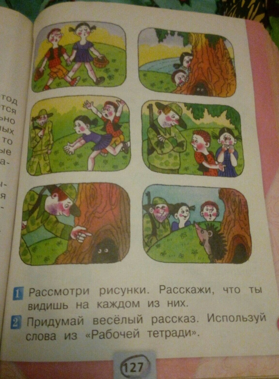 Мы с Петей пошли за грибами. На улице стояла хорошая погода и ничего не предвещало беды. Но тут, в дупле мы заметили светящиеся глазки, испугались и спрятались за дерево. Тогда, те глаза стали выглядывать ещё больше из тьмы, и мы пустились на утёк. Мимо как раз проходил лесник. Он расспросил у нас, что случилось и мы с испугом ответили хором -