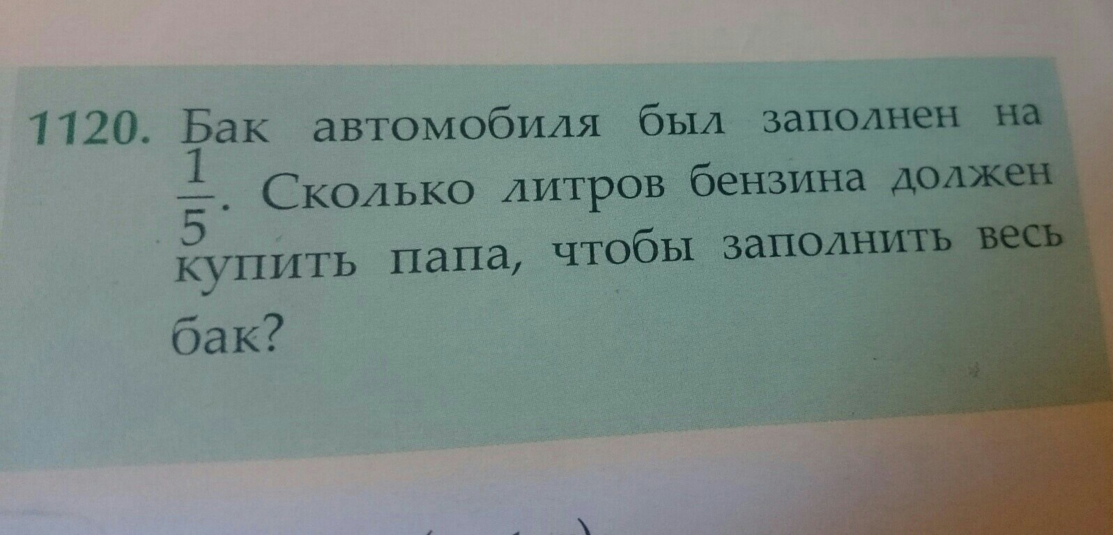 Ответ:4/5 бензина должен купить папа,чтобы заполнить весь бак
