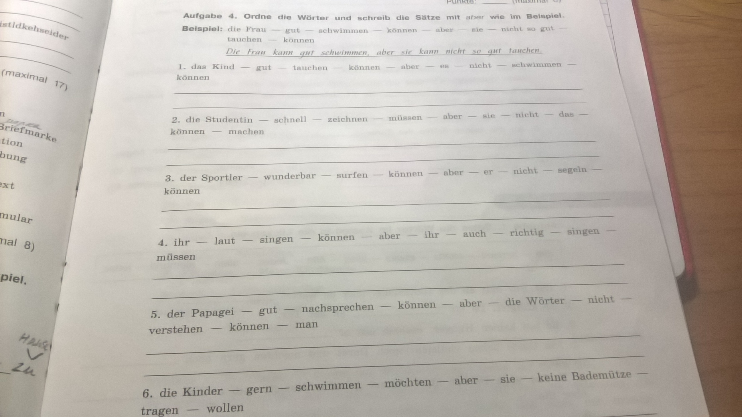 5. Der Papagei kann gut nachsprechen, aber man kann de Wörter nicht verstehen.