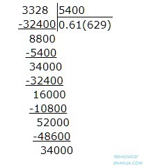 Чтобы делить десятичные числа, удобнее всего домножать их до целых чисел. Нам нужно 33,28 разделить на 54. Можно домножить число 33,28 до 3328 (умножили на сто, запятые передвинулись на два знака вперед; все, теперь у нас целое число). Раз первое число домножили на сто, значит и второе число домножаем на столько же. Получаем: 3328:5400.