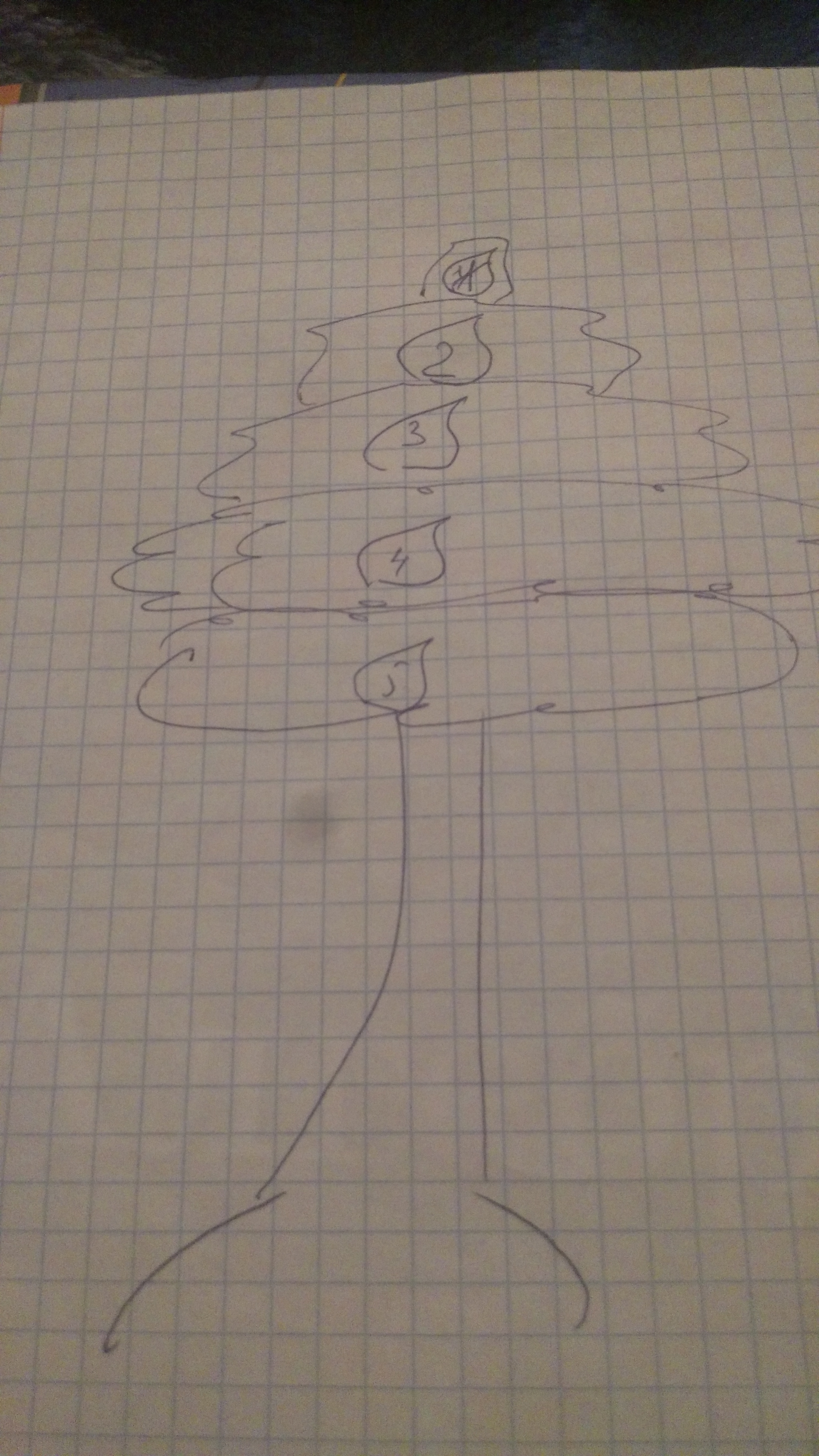 Нарисуй в окне дерево цифр,для которого все эти утверждения истинны: в этом дереве все цифры разные.в этом дереве ровно 5 уровней.на каждом уровне дерева ровно один лист.