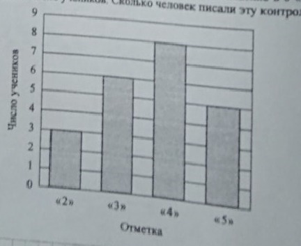 На диаграмме показаны результаты контрольной роботы по математике в 6 "B" классе. По вертикальной оси указано число учеников. Сколько человек писали эту контрольную работу?