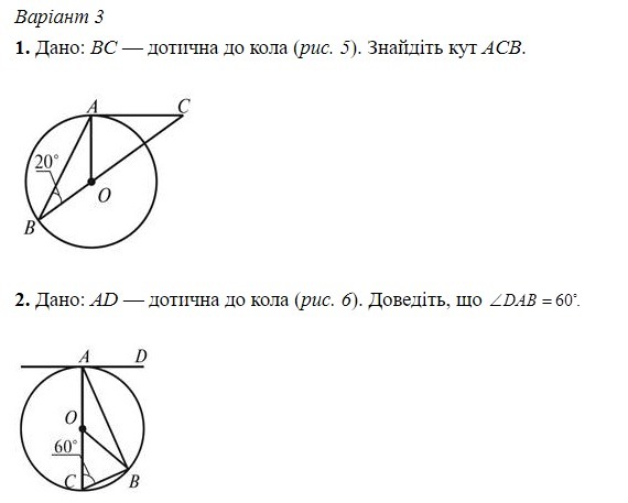 1) ОА и ОВ - радиусы, тогда треугольник равнобедренный, тогда <ВАО=20° АО перпендикулярна АС => <BAC=90+20=110° <АОС-внешний треугольника ВОС => 40° , тогда<ACB=180° -(110+40)=30°