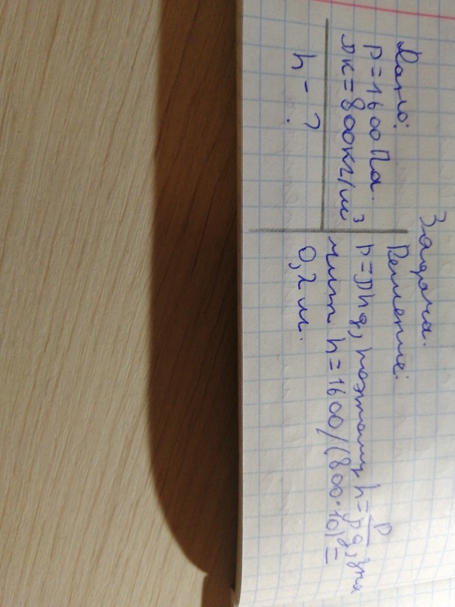 Чему равна высота столба керосина в сосуде, если давление на дно равно 1600Па?Плотность керосина 800кг/м3