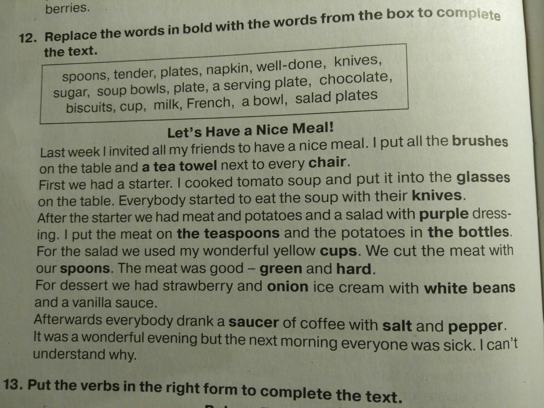 Тут сначала нужно заменить выделенные слова на слова, написанные в рамке.