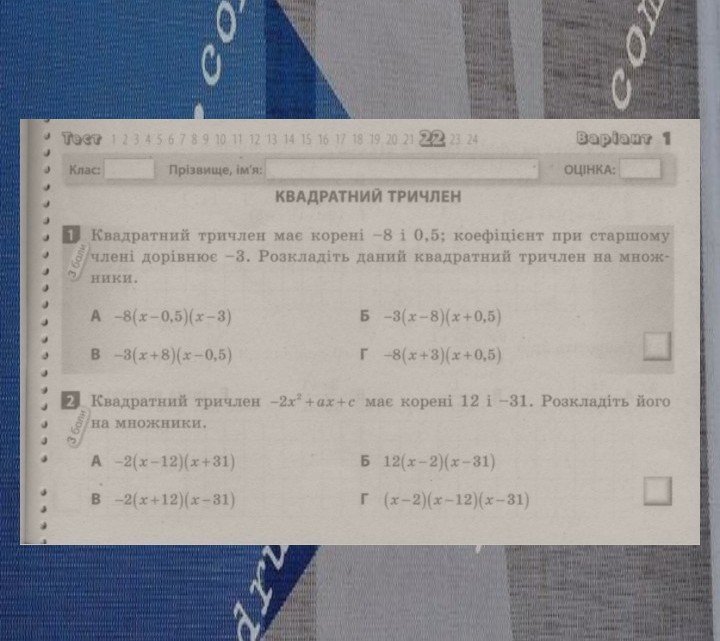 1) Ответ: -3(x+8)(x-0,5);-3(x^2-0,5x+8x-4)=-3(x^2+7,5x-4)=-3x^2-22,5x+12;