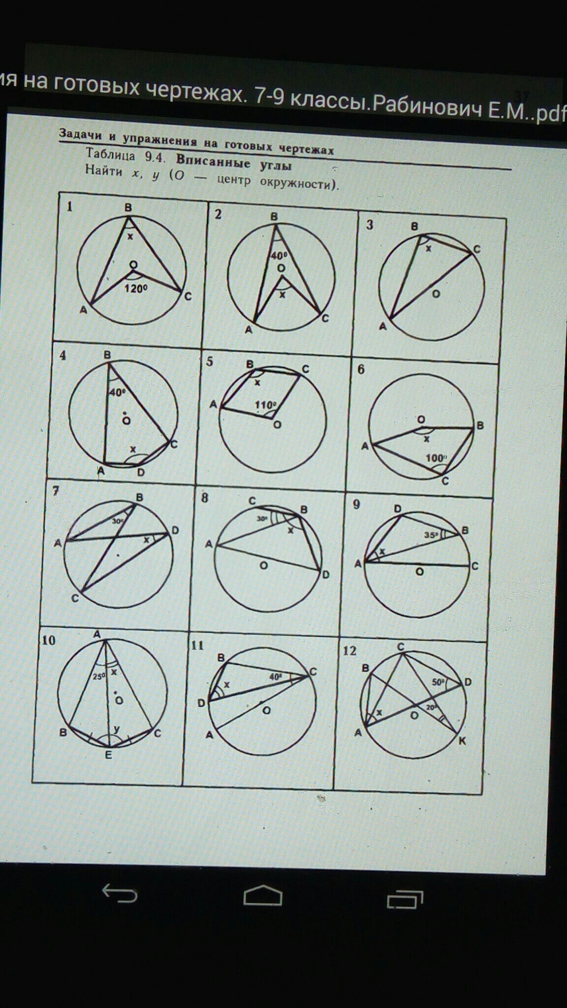 Например:возьмем твою задачу под номером 1. Центральный угол равен 120 градусам,из этого следует,что дуга тоже равна 120 градусам,так как угол центральный. Нам надо найти угол,который лежит "на стенке" окружности,но этот угол опирается на дугу,которая равна 120 градусам,из этого следует,что угол равен половине дуге,то бишь 120/2=60. Угол равен 60 градусам.