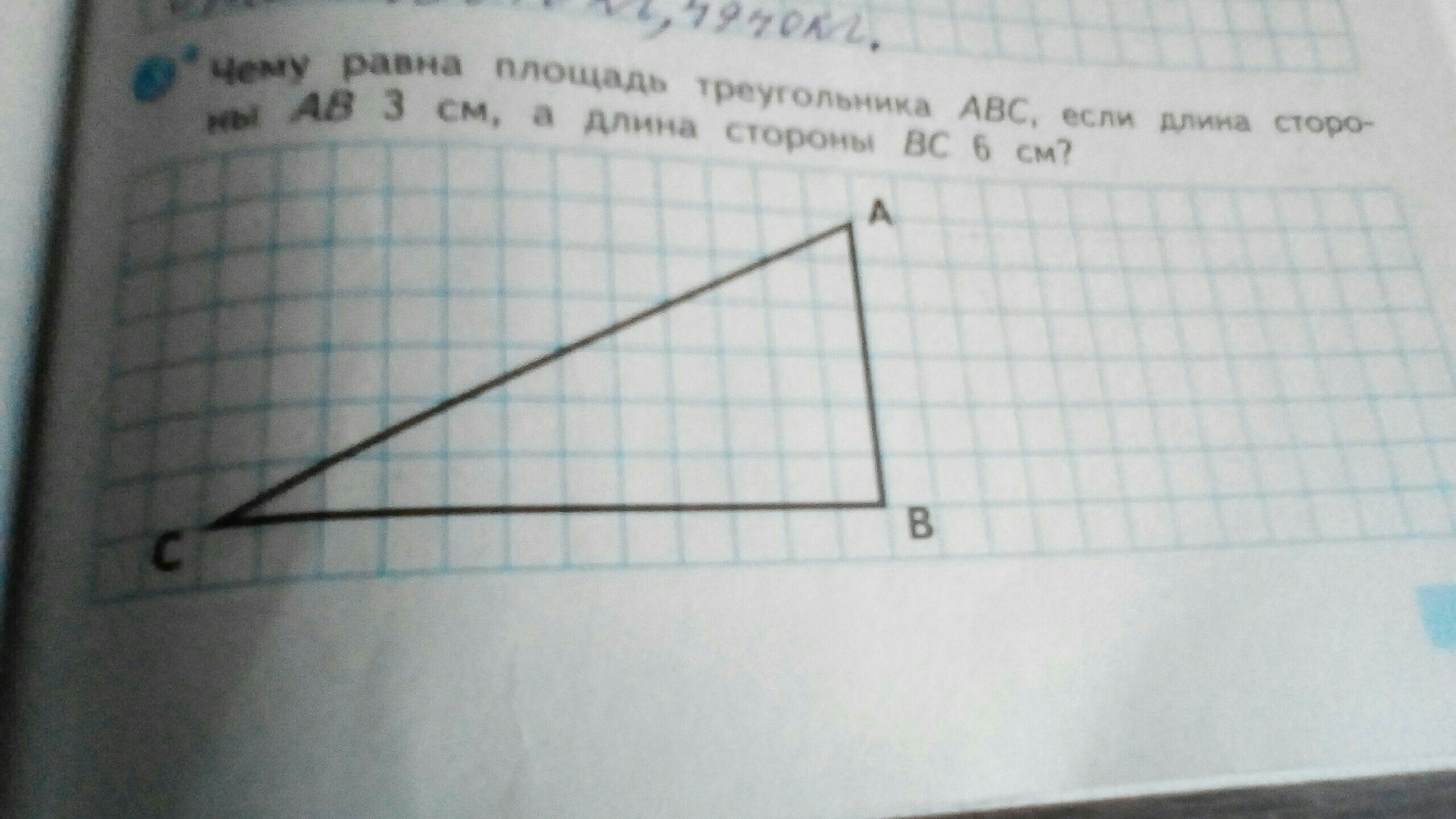 Чему равна площадь треугольника ABC, если длина стороны AB 3 см, а длина стороны BC 6 см?