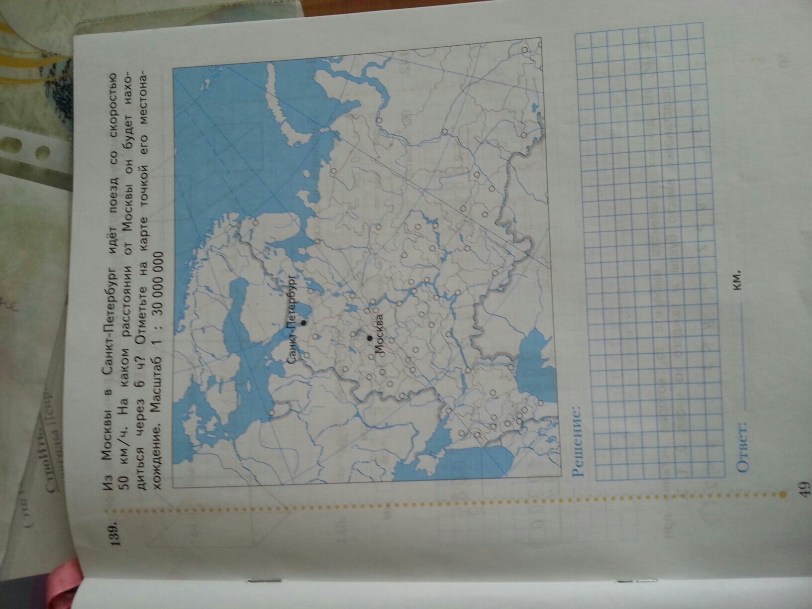 Помогите срочно ! И заранее спасибо! Из Москвы в Санкт- Петербург идёт поезд со скоростью 50 км/ч . На каком расстоянии от Москвы он будет находиться через 6 ч ? Отметьте га карте точкой его местоположение . Маштаб 1 :30 000 000.