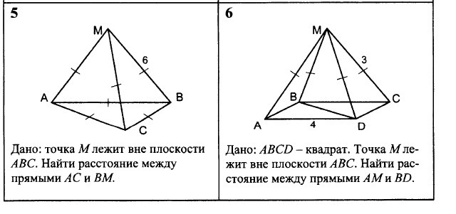 Дано: ABCD - квадрат. Точка М лежит вне плоскости ABC. Найти расстояние между прямыми AМ и BD.
