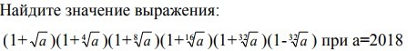 последние две скобки-разность квадратов, А можно представить как (а^1/32)*2, сокращаем, получается а^1/16, а дальше пишем (1+a^1/16)(1-a^1/16), затем снова сворачиваем по формуле и сокращаем получается a^1/8 и так далее