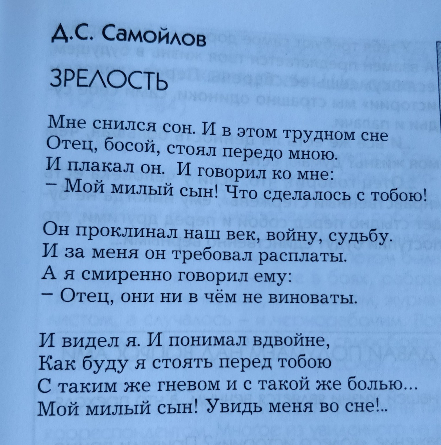 Как понимать смысл стихотворения д.с самойолова "Зрелость"