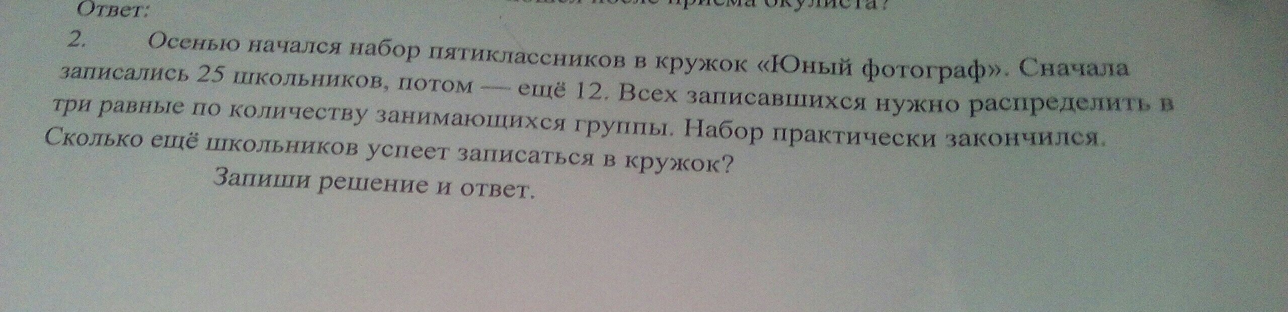 Ответ :еще 4-ро школьников успеют записаться на кружок