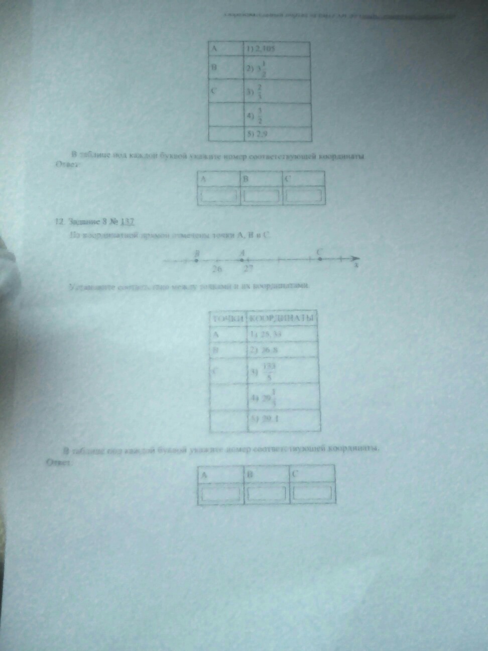 установите соответствие между точками и их координатами