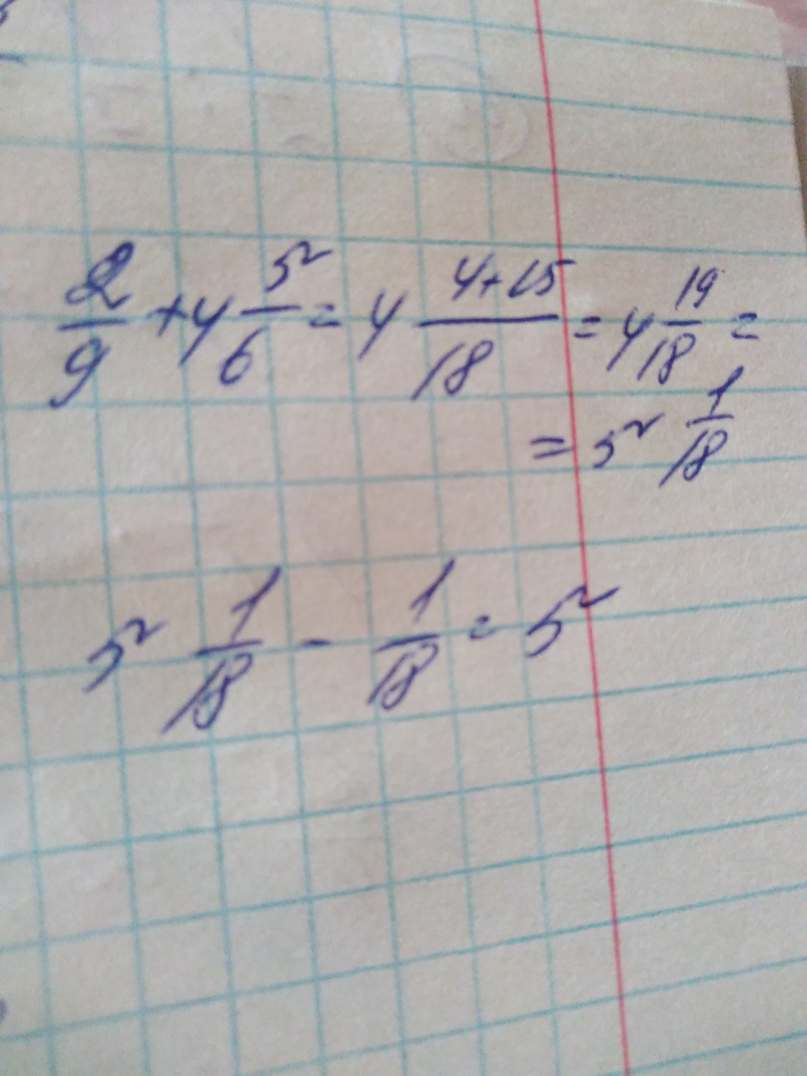 2/9+4цел 5/6-1/18= 2/9 + 29/6 - 1/18=