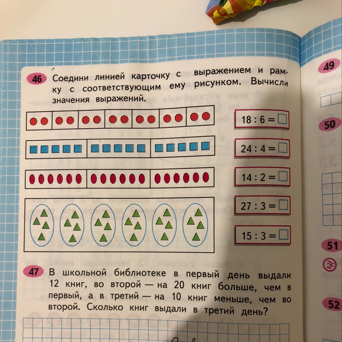 Соедини линией карточку с выражением и рамку с соответствующим рисунком , вычисли значения выражений .задание 46