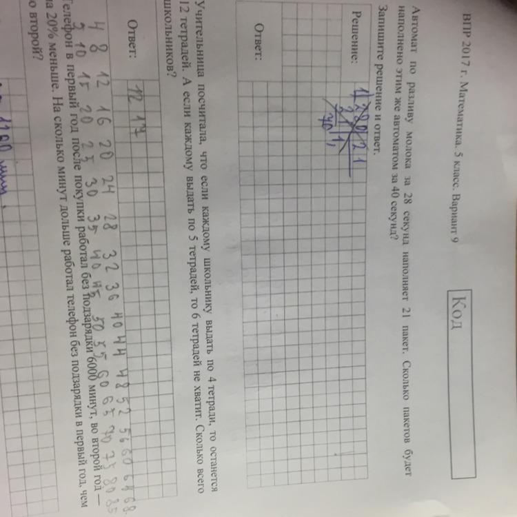 1) 21 : 28 = 0,75 пакета наливает за 28 сек