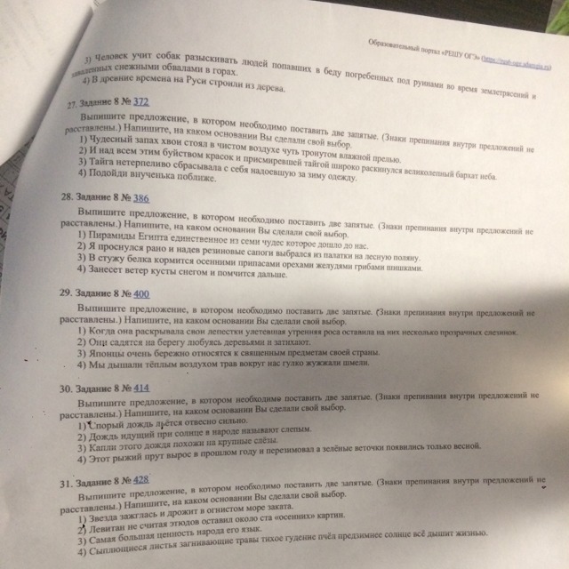 27 задание 8 372 предложение под номером 4, так как там имеется обращение ,, внучка,, а обращение мы выделяем запятыми с двух сторон , если оно находится в середине предложения