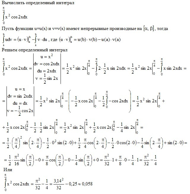 pi/4 интеграл 0 ( x^2)*cos(2*x)*dx