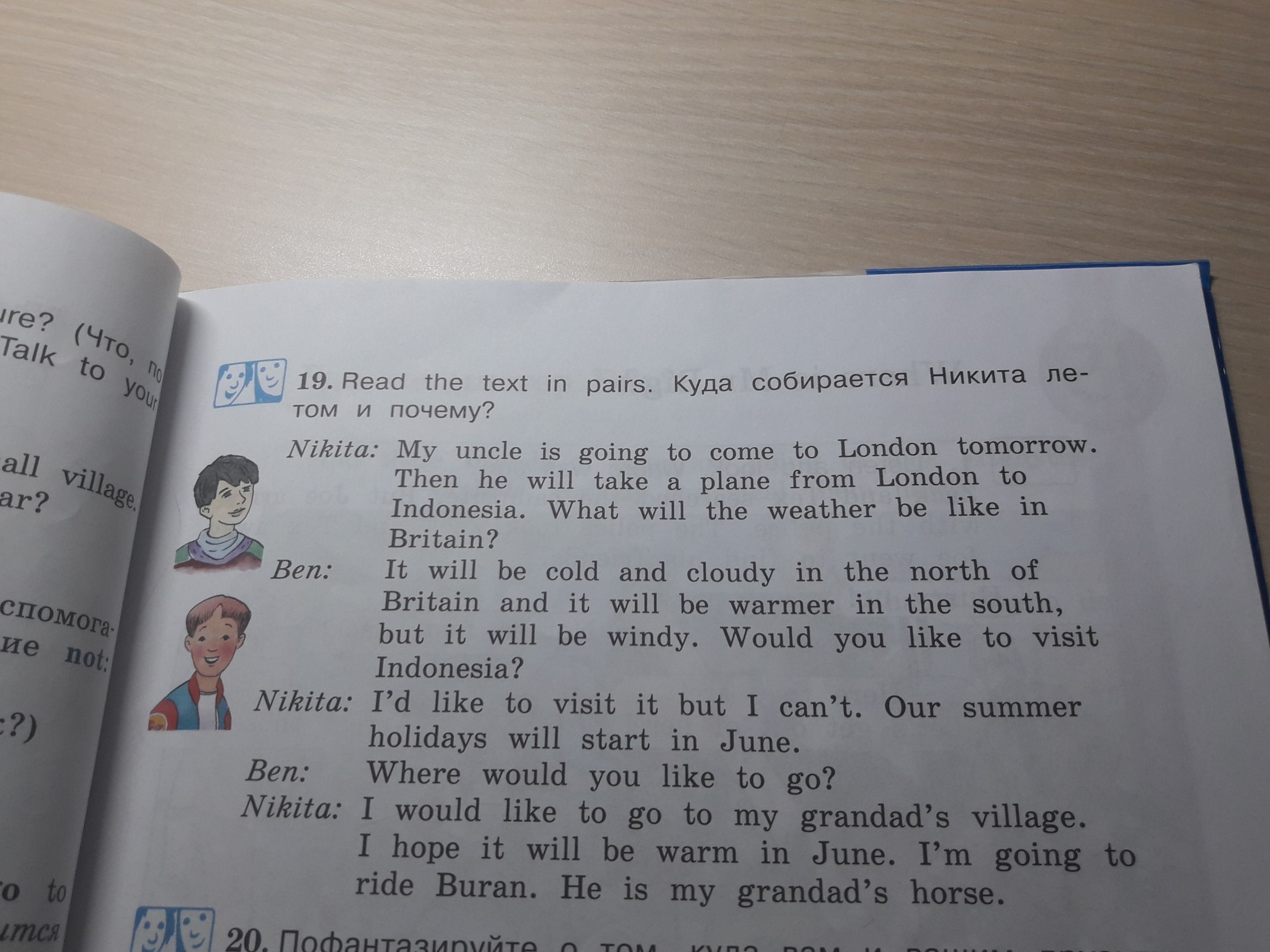 Я хочу поехать в дедушкину деревню. В июне будет тепло. Я еду кататься на Буране. Это дедушкин конь