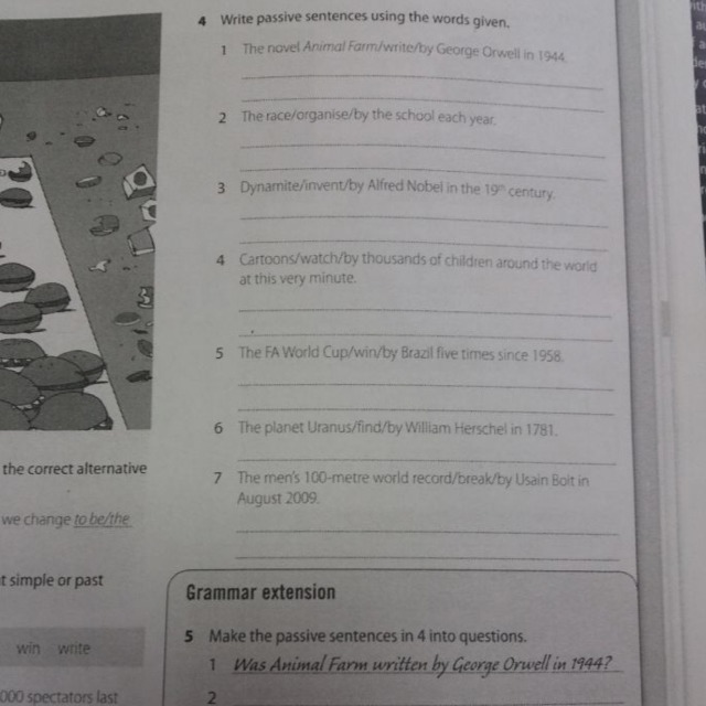 Составить вопросы в пятом номере по предложениям в четвертом номере в пассивном залоге