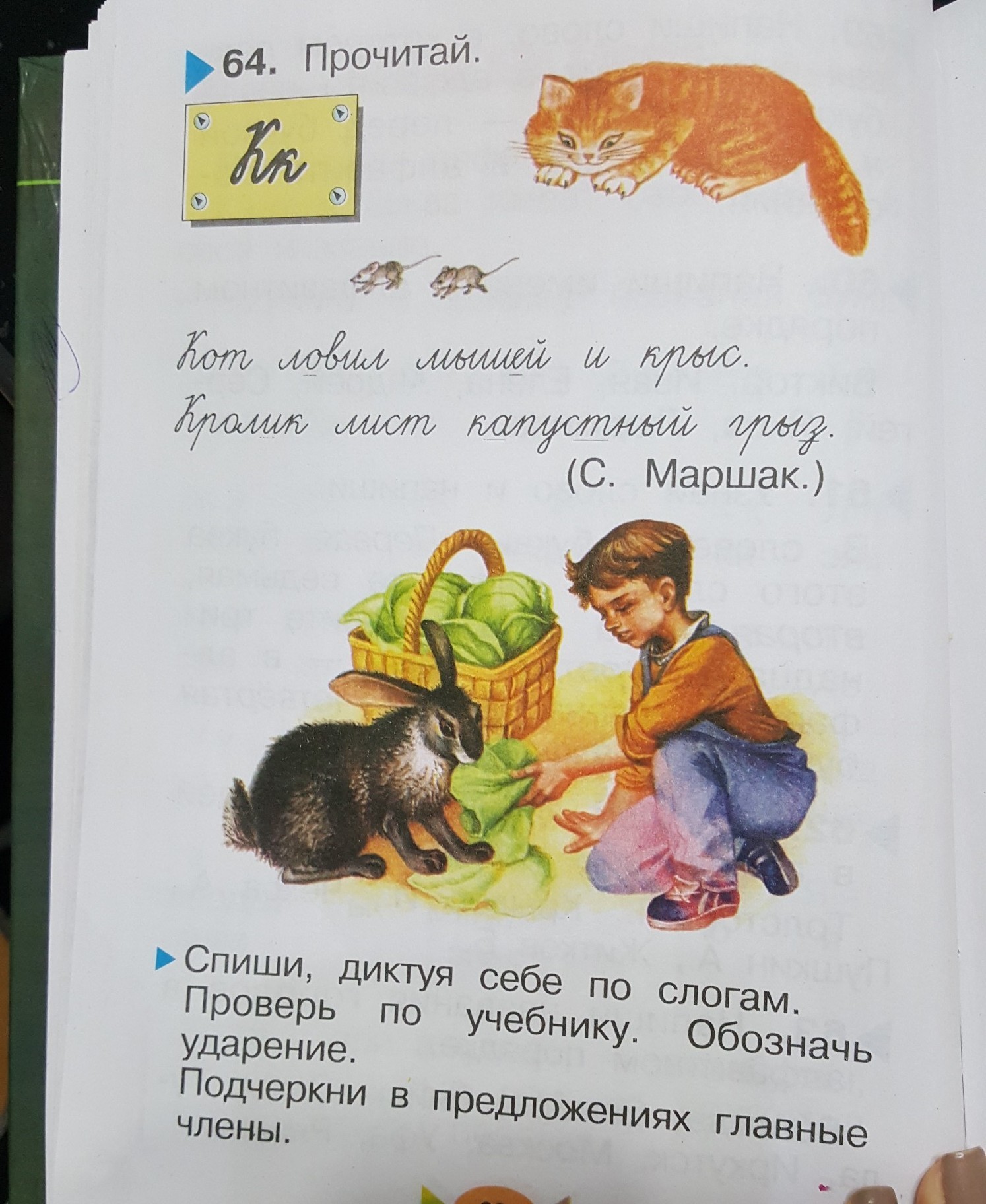 крОлик лИст капУстный грЫз. (кролик-подлежащее, грыз-сказуемое)