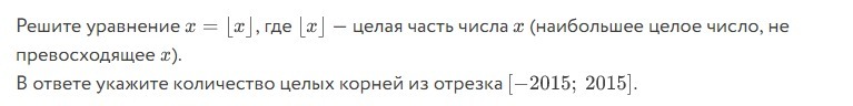 откуда имеем {x}=0, следовательно, x-любое целое число. Следовательно, количество целых корней из отрезка равно 4031