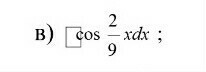 интеграл соs(2x/9)dx=9/2 uнтеграл (cos2x/9)*d(2x/9)=(9/2)*sin(2x/9)