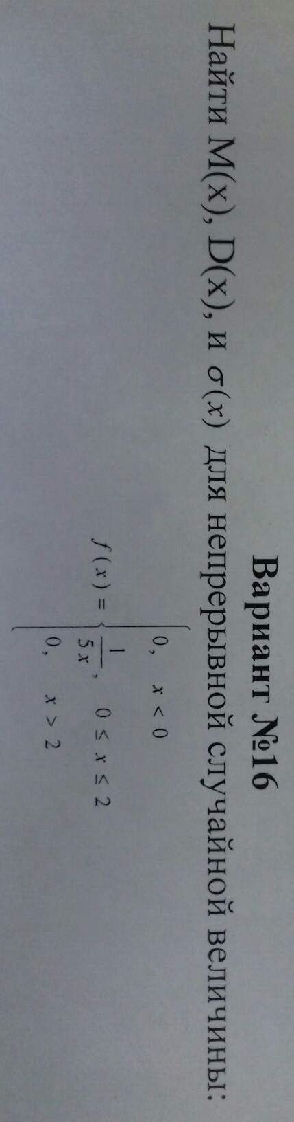 Найти М (х), D (x), o (x) для непрерывной случайной величины: