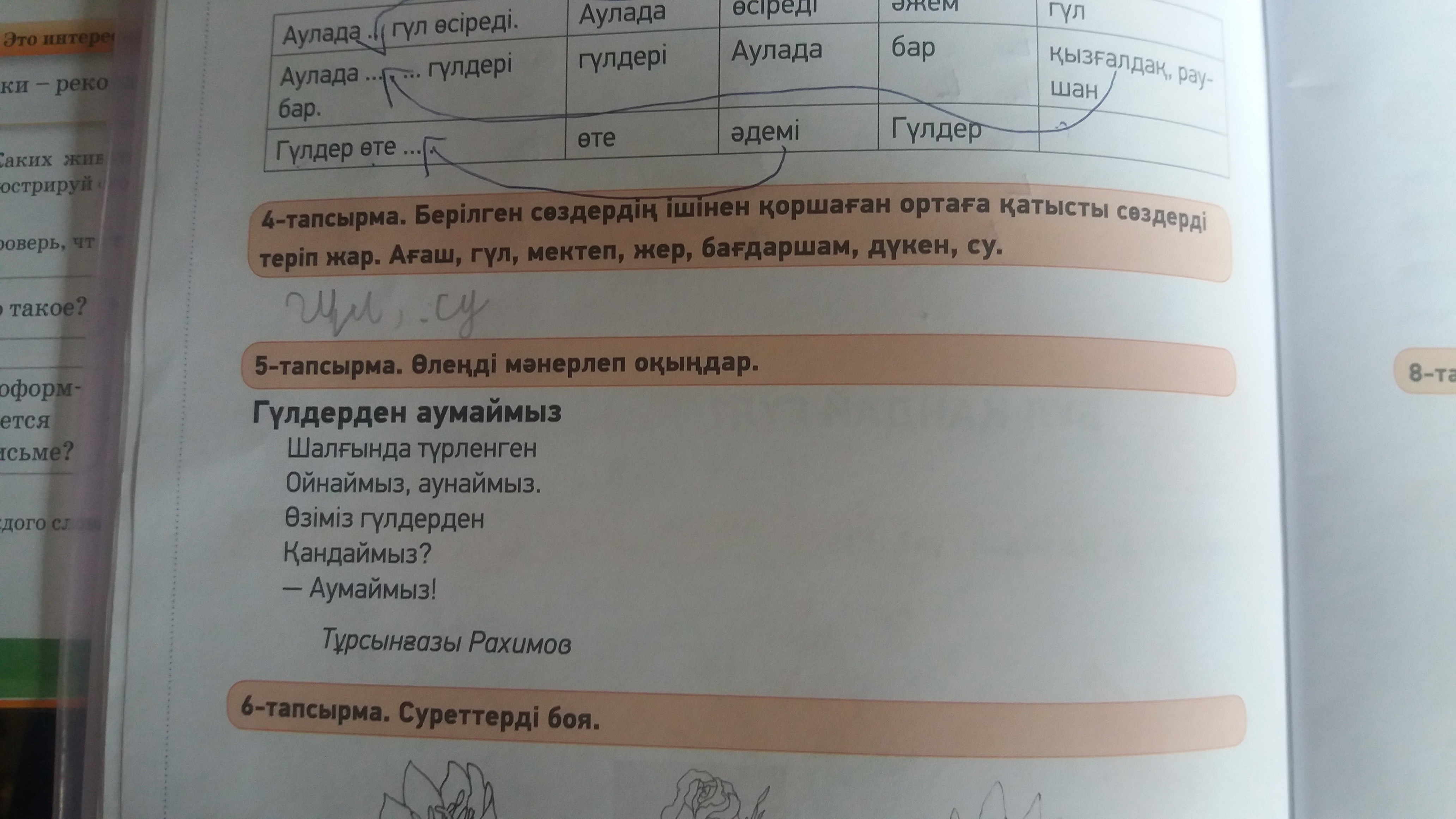 4спиши агаш гул мектеп Жер багдаршам дукен Су. 5 прочитать.