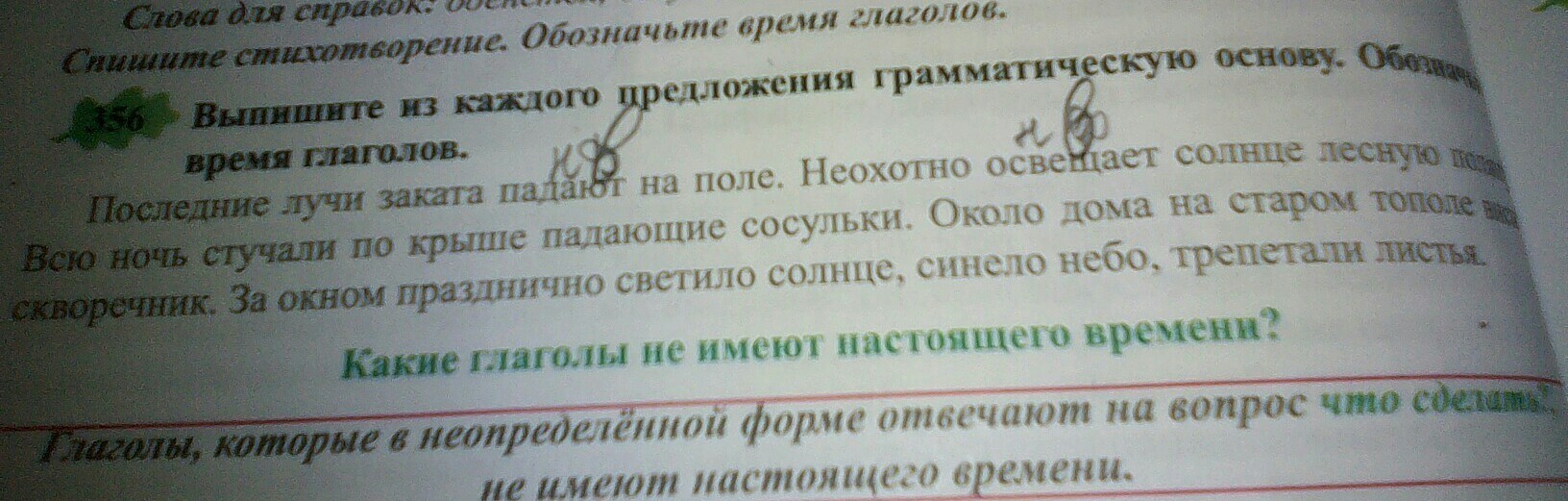 356. Выпишите из каждого предложения грамматическую основу. Обозначьте время глаголов.