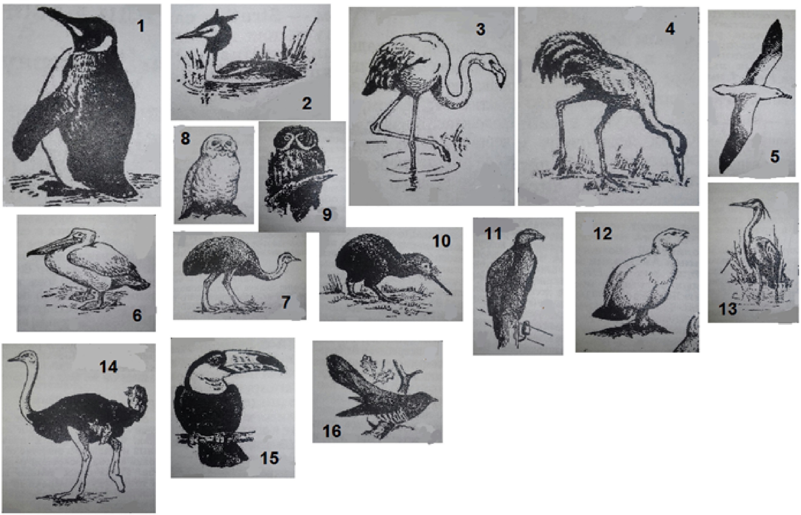 5. Сопоставьте птиц изображенных на картинке с их названиями и местом обитания.