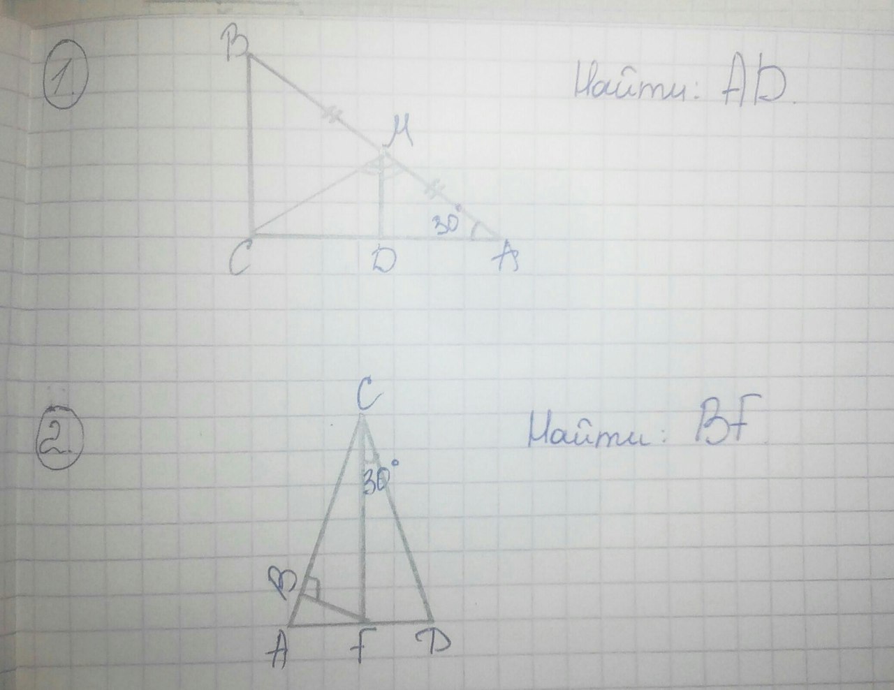 Условия предоставить не могу к задачам, увы. Но, думаю, вы и так все видите на рисунках. (P.s, если что, то эти задачи по теме "Некоторые свойства прямоугольного треугольника")