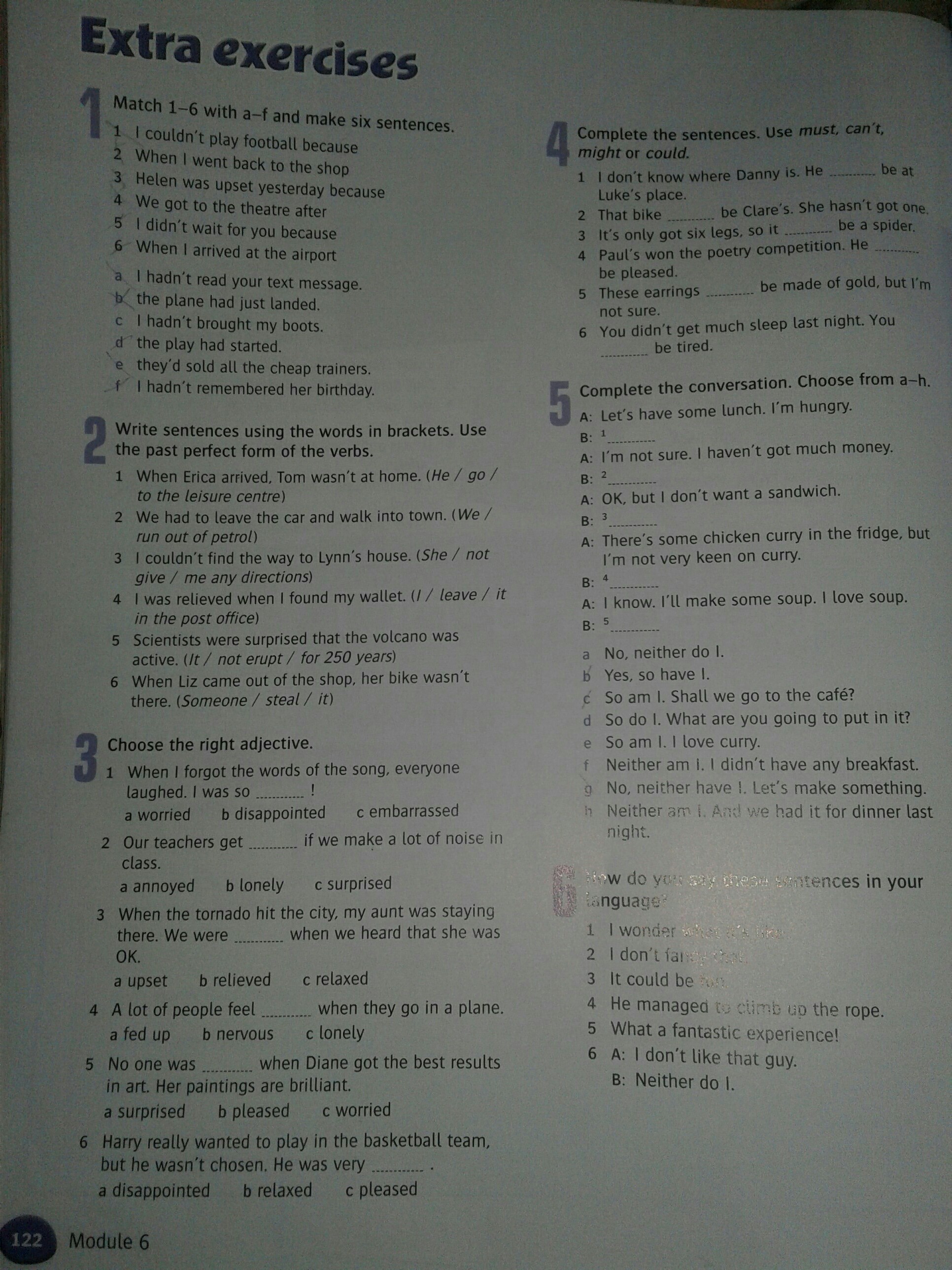 2) 1. He had gone to the leisure centre.