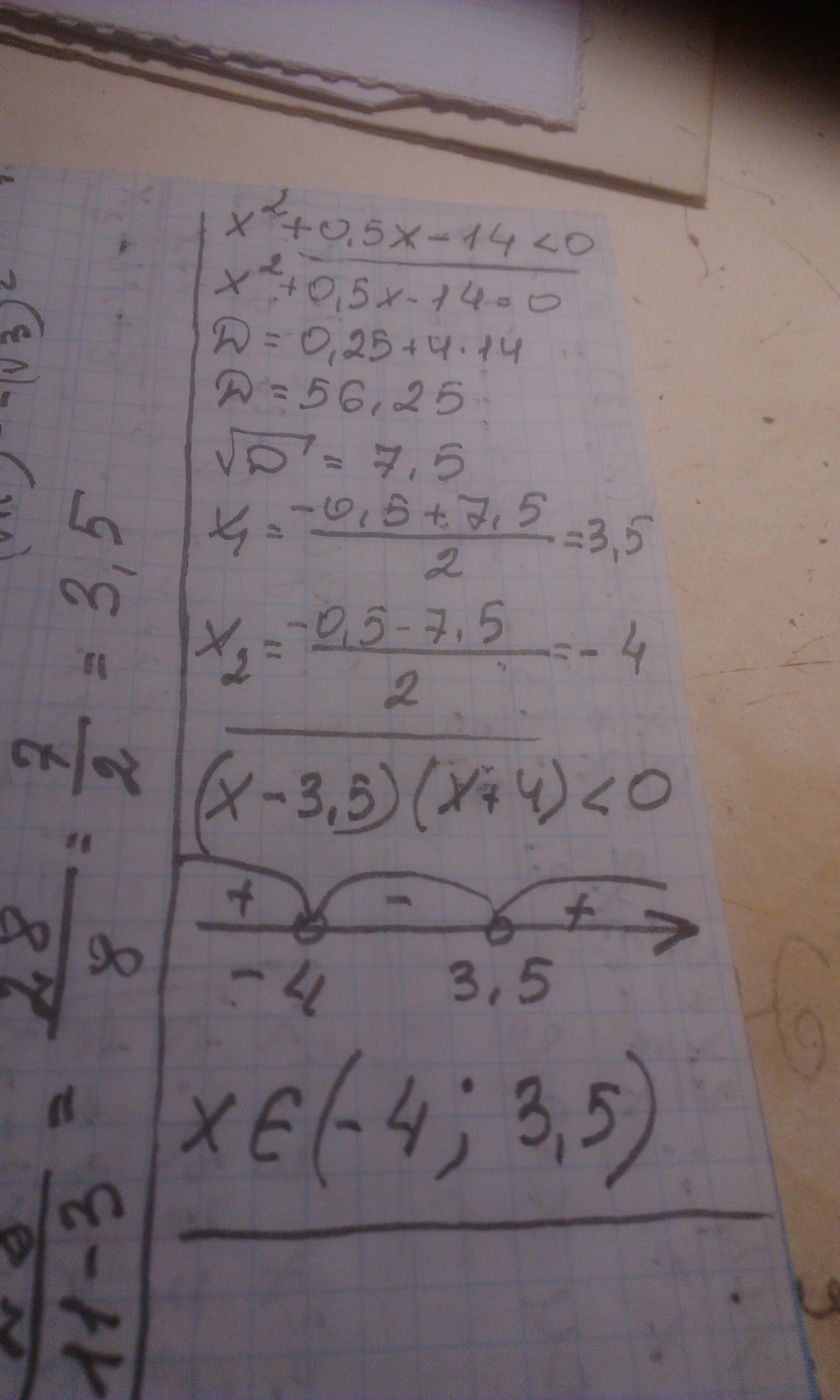 D=0.25-4*1*(-14)=0.25+56=56.25=7.5