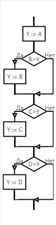 Дополнить алгоритм из примера 9 так чтобы с его помощью можно было найти наибольшую из четырёх величин A, B,C и D