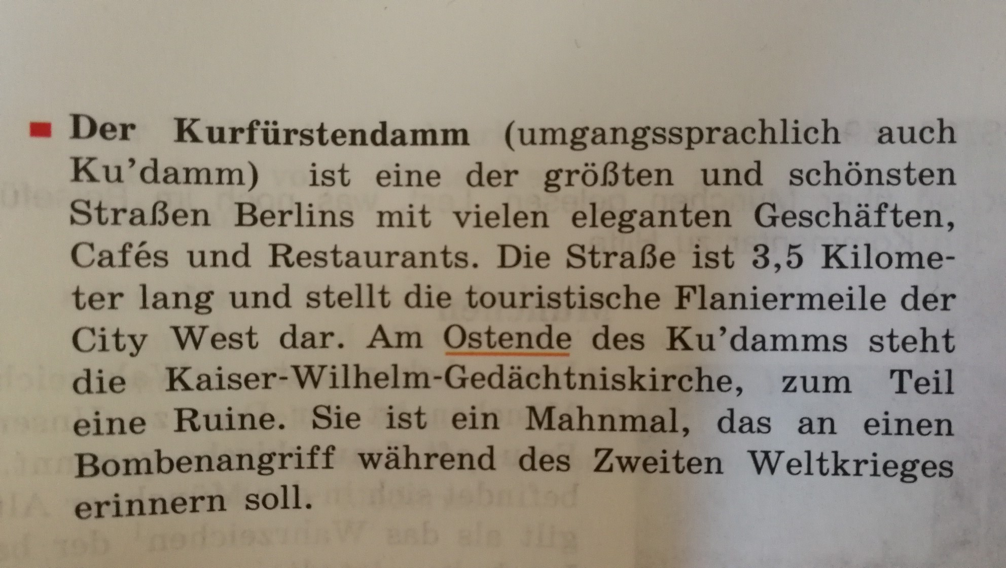 Курфюрстендамм - (разг. также Ку*Дамм) является одной из самых больших и красивых улиц Берлина с множеством элегантных магазинов, кафе и ресторанов. Улица длиной в 3,5 км представляет собой туристический променад Сити Вест. С восточного края Ку*Дамм стоит мемориальная церковь, частично в разрушенном состоянии. Это мемориал, который должен напоминать о бомбардировке во время Второй Мировой войны.