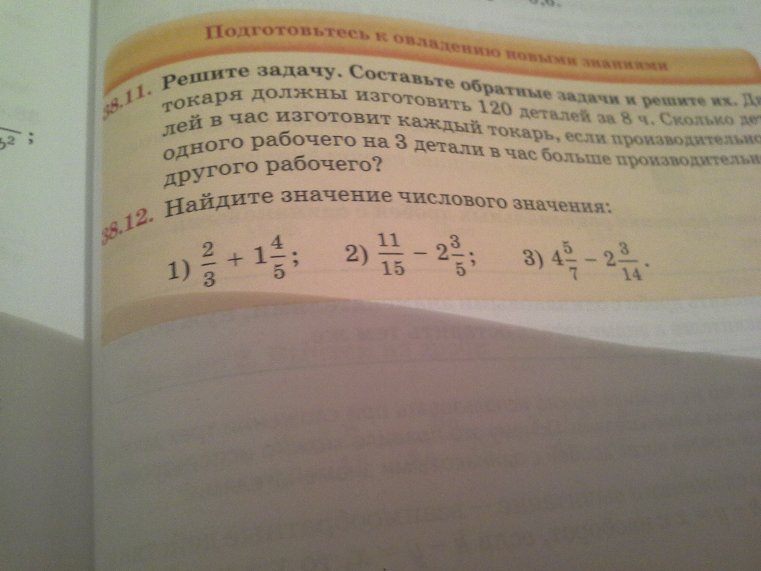 frac{2}{3}  + 1 frac{4}{5}  =  frac{10}{15}  + 1 frac{12}{15}  =  \  = 1 frac{22}{15}  = 2 frac{7}{15}