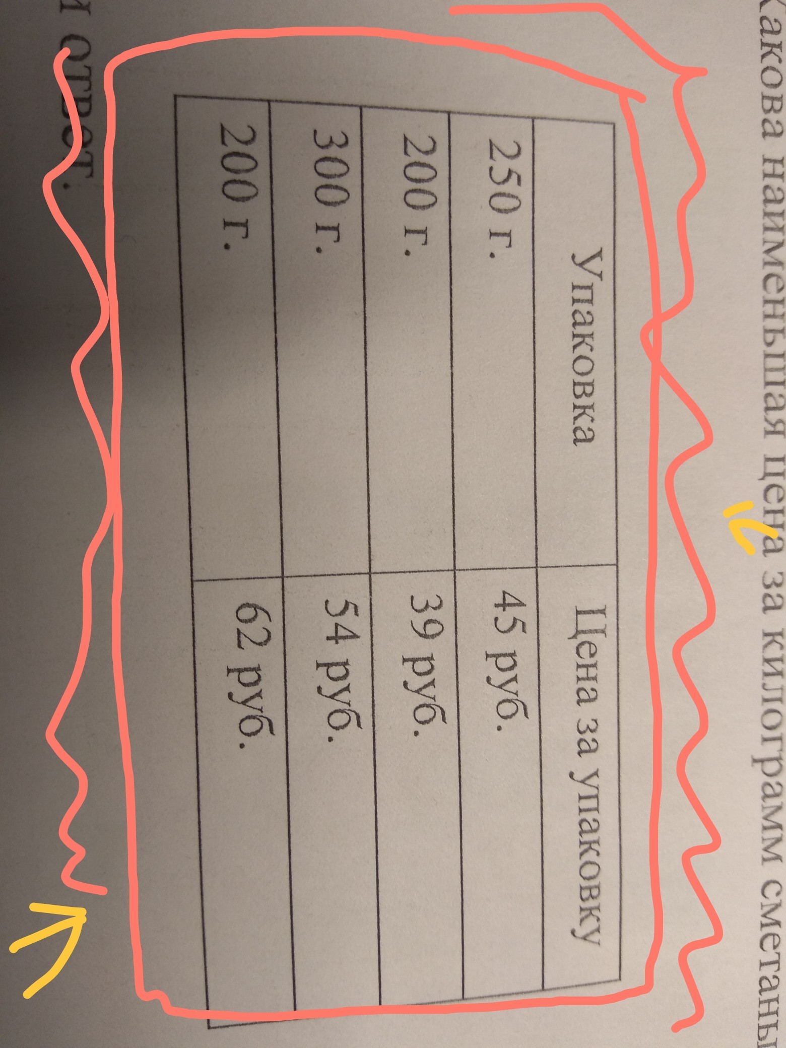в магазине продаётся несколько видов сметаны в различных упаковках и по различным цене какова наименьшая цена за килограмм сметаны среди данных в таблицы видов