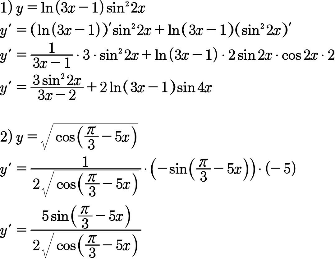 1) Использовали правила: производная произведения и производная сложной функции. А, так же, формулу синус двойного аргумента.