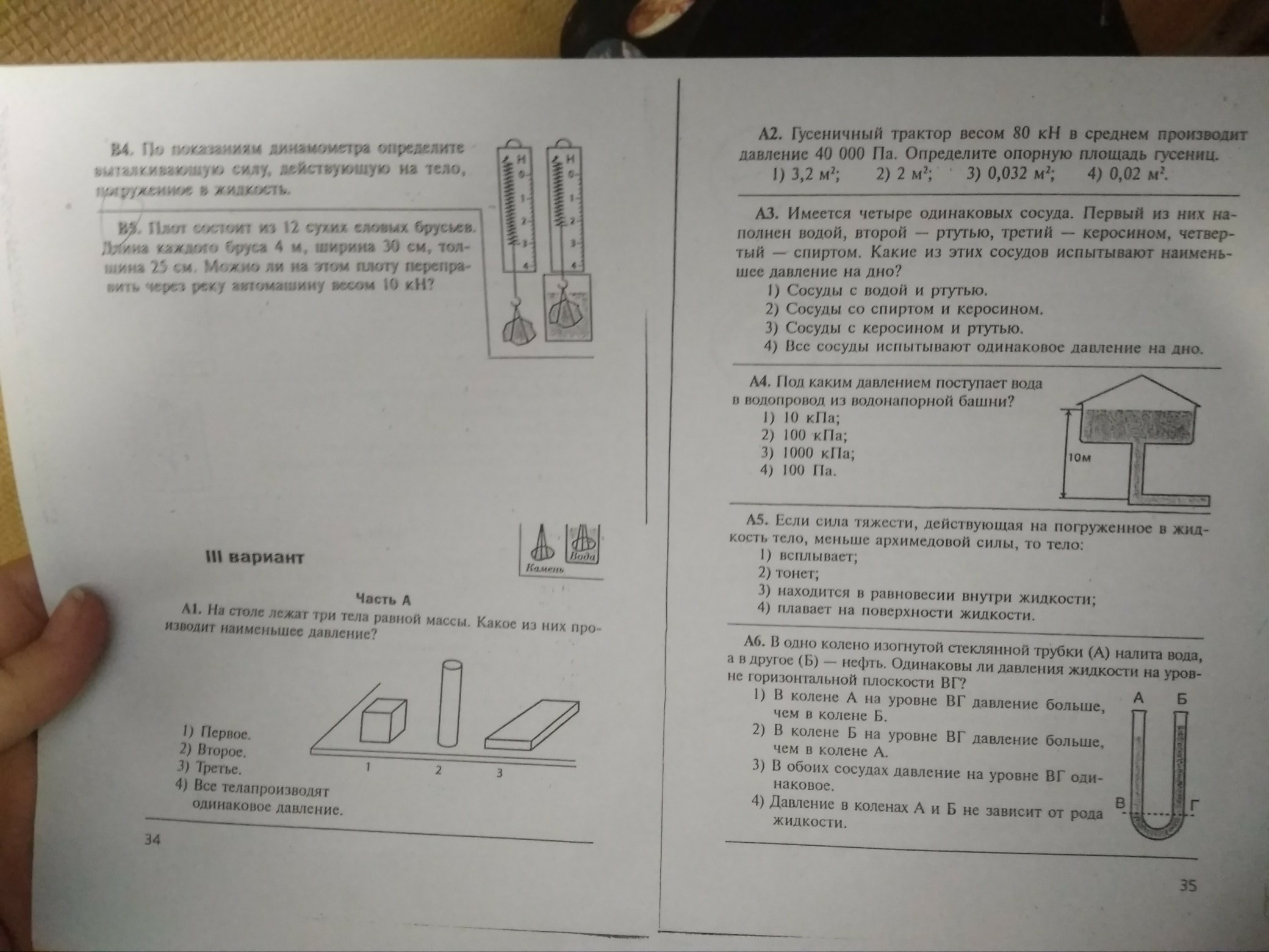 А3)-2 (т.к давление зависит от плотности жидкости , а у керосина и спирта она самая маленькая)