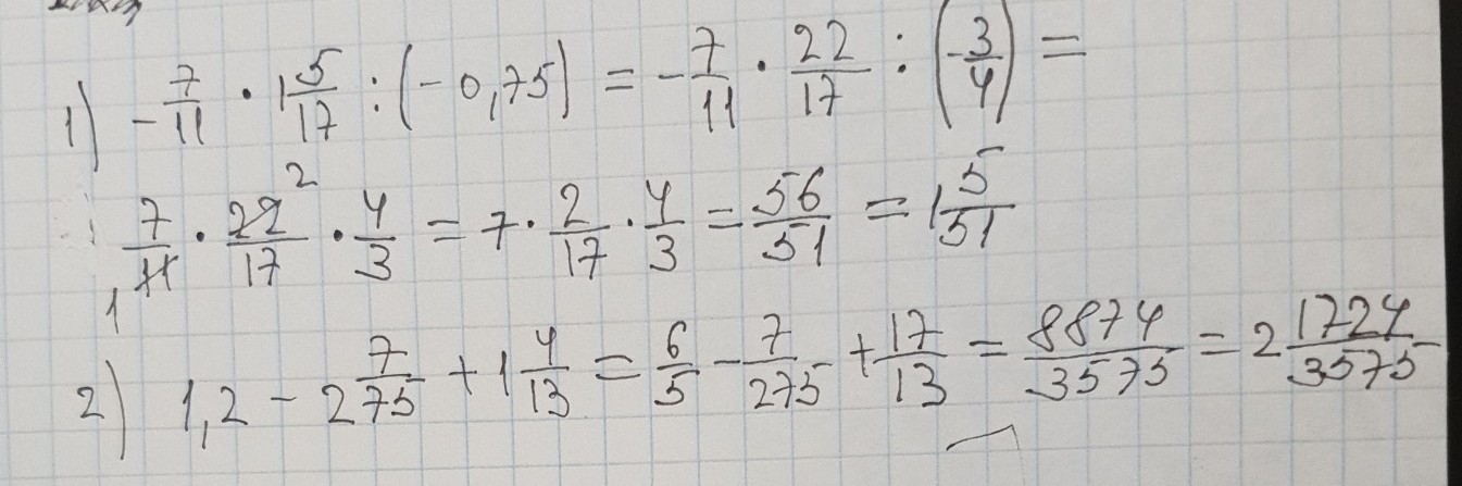 1) - 7/11 * 1 5/17 : (-0,75)