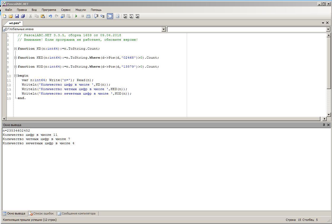 function KED(n:int64):=n.ToString.Where(d->Pos(d,'02468')>0).Count;