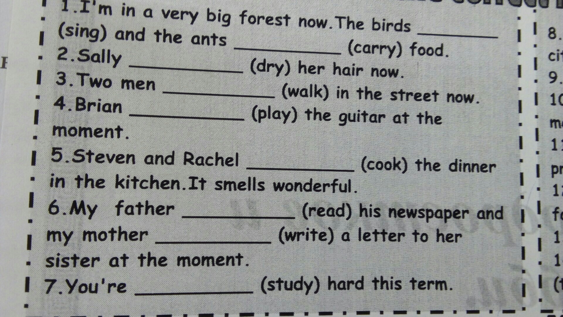 1. are singing; are carrying