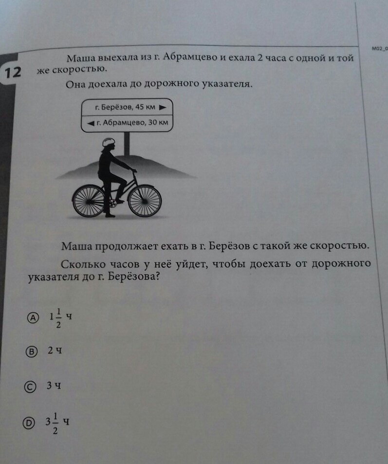 От Абрамцево до указателя Маша ехала со скоростью 30/2=15 км/час.
