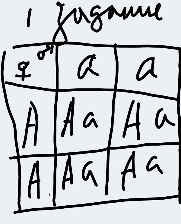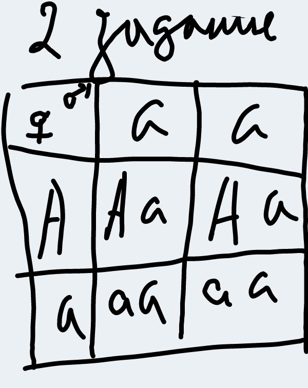 $$$ если не чистопородная (Aa) ТО 50 % в F1 . НАРИСУЕМ решетку пеннета .(2 задание)