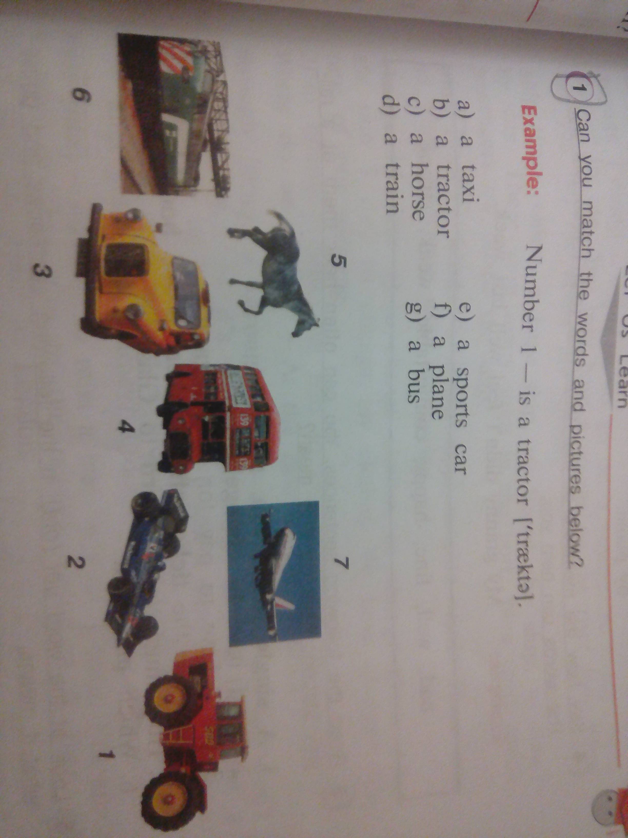 Number 1 is tractor Number 3 a taxi Number 4 a bus Number 5 a horse