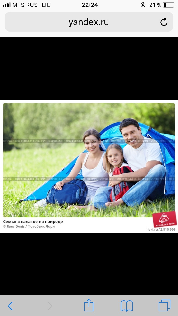 На снимке изображена семья, которая состоит из трех человек: мать, отец и дочь. Можно предположить, что в выходные семья выбралась за город, с ночевкой. Место для ночевки они выбрали на большой поляне, которая окружена деревьями и кустами. Глава семейства установил палатку в тени дерева, которое хорошо защищает от солнца. Палатка у них небольшая, полукруглая, синяя. Свои вещи люди сложили в два рюкзака. Синий рюкзак несла мать. У отца рюкзак красный с черными и голубыми вставками. одеты они в удобную и практичную одежду. На женщине белая майка, спортивные брюки и кроссовки. Девочка одета так же как и мать. Мужчина снял свою обувь и сидит босым. На нем одеты голубые джинсы и белоснежная футболка. Настроение у людей хорошее. Они улыбаются в предвкушении двух дней, проведенных вдали от городской суеты, на природе