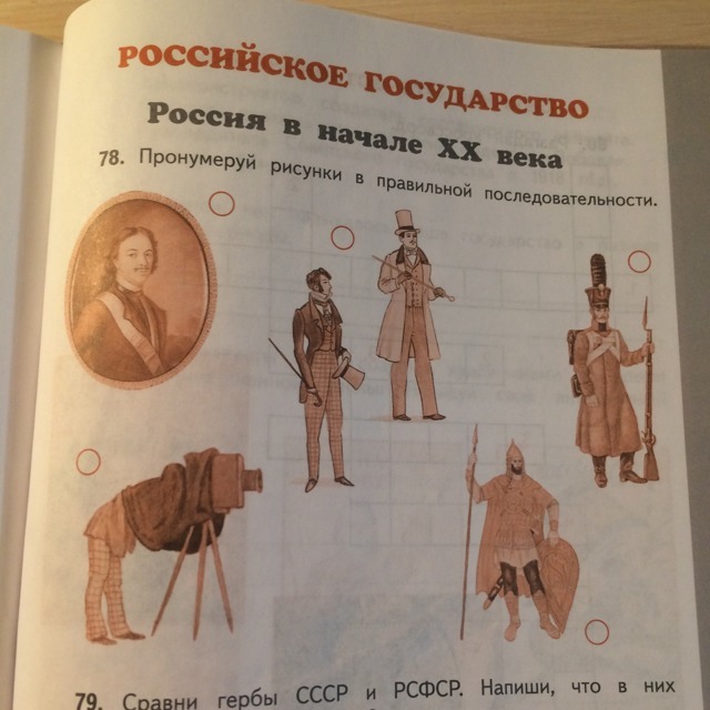 1) рыцарь, 2) солдат с ружьем, 3) человек в шляпе 4) фотоаппарат 5) фото в круглой раме