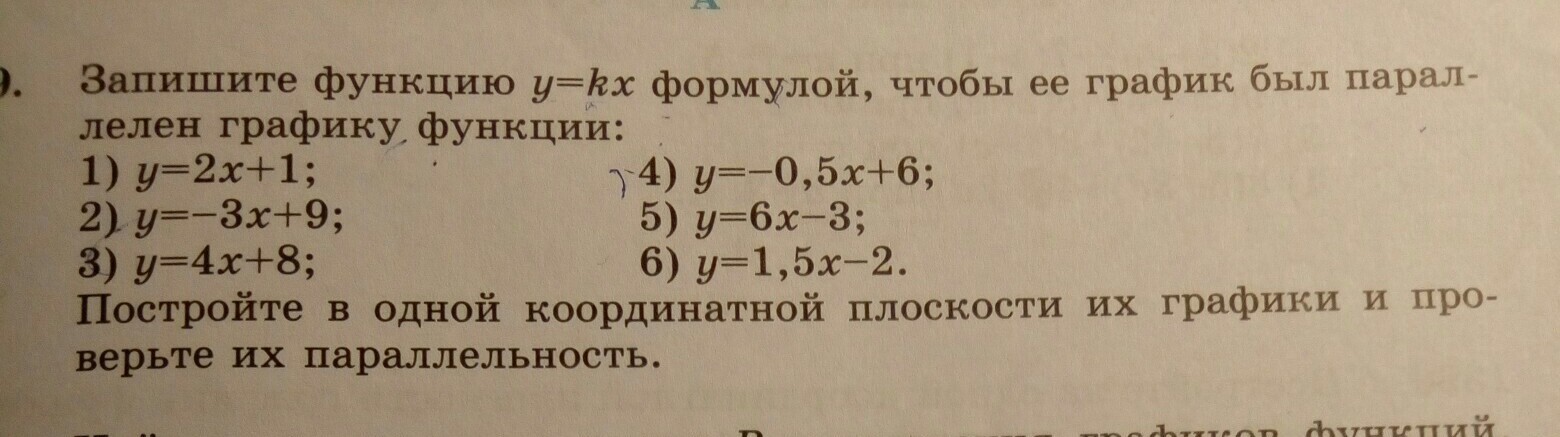 запишите функцию у=kx формулой что бы ее график был параллелен графику функции